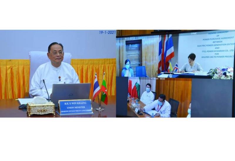 ရန်ကုန်တိုင်းဒေသကြီး အလုံဓာတ်အားပေးစက်ရုံဝင်းအတွင်း TTCL Power Myanmar Co.,Ltd. မှ အကောင်အထည်ဖော်ဆောင်ရွက်မည့် ၃၆၅ မဂ္ဂါဝပ် LNG to Power Project အတွက် ဓာတ်အား ဝယ်ယူရေးစာချုပ် ချုပ်ဆိုခြင်းအခမ်းအနားကို ယနေ့မွန်းလွဲ ၁ နာရီတွင် လျှပ်စစ်နှင့်စွမ်း အင်ဝန်ကြီးဌာန၌ ကိုဗစ်-၁၉ ကာကွယ်ရေးနည်းစနစ်များနှင့်အညီ ကျင်းပသည်။