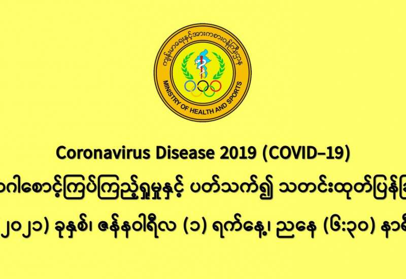 (၃၁-၁၂-၂၀၂၀) ရက်နေ့၊ ည (၈:၀၀) နာရီမှ (၁-၁-၂၀၂၁) ရက်နေ့၊ ည (၈:၀၀) နာရီ အတွင်း ဓာတ်ခွဲနမူနာ စုစုပေါင်း (၁၅,၇၃၅) ခုအား စစ်ဆေးပြီးစီးခဲ့ရာ COVID-19 ရောဂါ ဓာတ်ခွဲအတည်ပြု လူနာသစ် (၄၁၂) ဦး တွေ့ရှိရပါသည်။