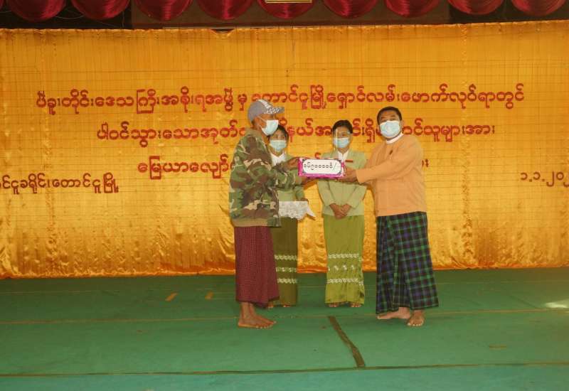 တောင်ငူမြို့ရှောင်လမ်း ဖောက်လုပ်ရာ၌ ပါဝင်သွားသည့် အုတ်တွင်းမြို့နယ်ရှိ တောင်သူများအား မြေယာ လျော်ကြေးငွေများ ပေးအပ်ခြင်း အခမ်းအနားကို မြို့နယ်ခပေါင်းခန်းမတွင် ယနေ့ နံနက်ပိုင်းက ကျင်းပရာ ပဲခူးတိုင်းဒေသကြီးအစိုးရအဖွဲ့ ဝန်ကြီးချုပ် ဦးဝင်းသိန်း တက်ရောက်ပေးအပ်သည်။