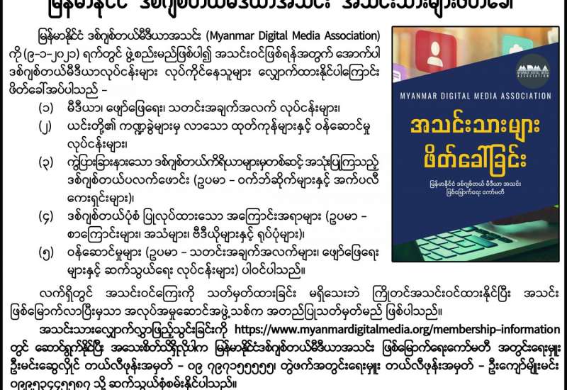 မြန်မာနိုင်ငံ ဒစ်ဂျစ်တယ်မီဒီယာအသင်း အသင်းသားများ ဖိတ်ခေါ်