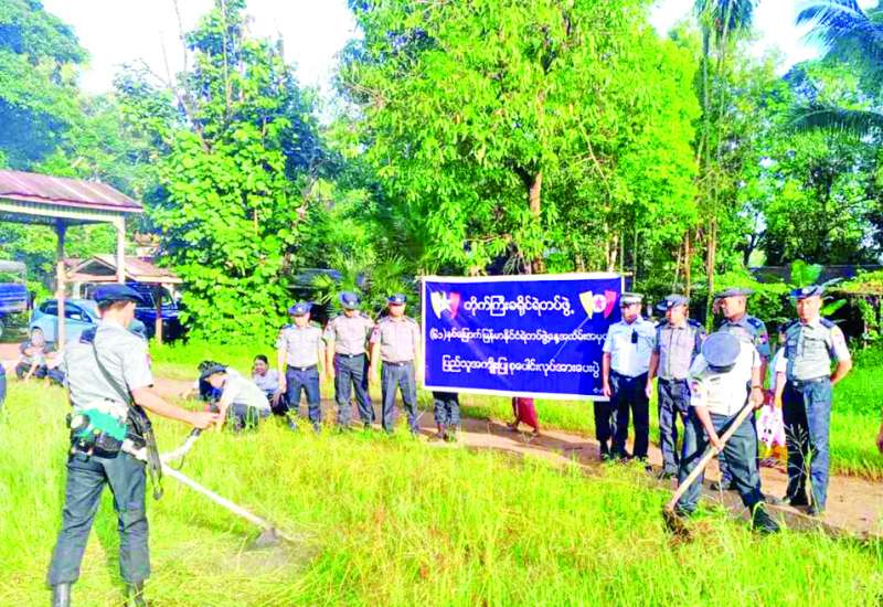 ရန်ကုန်တိုင်းဒေသကြီး တိုက်ကြီးခရိုင်ရဲတပ်ဖွဲ့မှ (၆၁) နှစ်မြောက် မြန်မာနိုင်ငံရဲတပ်ဖွဲ့နေ့ကို ကြိုဆိုဂုဏ်ပြုသောအားဖြင့် ယနေ့နံနက်ပိုင်းတွင် တိုက်ကြီးမြို့နယ် မစိုးရိမ်ဘုန်းကြီးကျောင်းအတွင်း၌ စုပေါင်းသန့်ရှင်းရေးပြုလုပ်သည်။