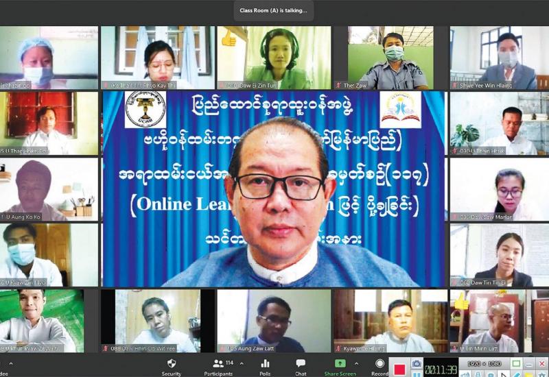 အရာထမ်းငယ် အခြေခံသင်တန်းအမှတ်စဉ်(၁၁၇)ကို Online Learning System ဖြင့် ဖွင့်လှစ်ပို့ချခြင်း သင်တန်းဖွင့်ပွဲအခမ်းအနားကို ယနေ့ နံနက် ၈ နာရီ တွင် ရန်ကုန်တိုင်းဒေသကြီး လှည်းကူးမြို့နယ် ဗဟို ဝန်ထမ်းတက္ကသိုလ် (အောက်မြန်မာပြည်) တွင် ကျင်းပရာ ပါမောက္ခချုပ် ဦးကျော်ဝင်းဟန်က သင်တန်းဖွင့်အမှာစကား ပြောကြားပြီး (ဝဲအောက်ပုံ)ဒုတိယ ပါမောက္ခချုပ်များ၊ ဌာနကြီးမှူးများ၊ ပညာ ဌာနများမှ ပါမောက္ခများ၊ သင်ကြားပို့ချမည့် ဆရာ ဆရာမများနှင့် သင်တန်းသား သင်တန်းသူများ တက်ရောက်ကြသည်။
