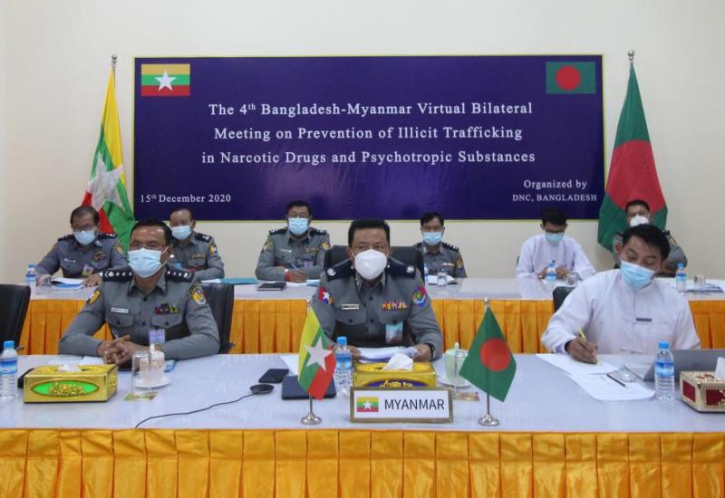 (၄)ကြိမ်မြောက် မြန်မာ−ဘင်္ဂလားဒေ့ရှ် နှစ်နိုင်ငံ မူးယစ်ဆေးဝါးပူးပေါင်းထိန်းချုပ်ရေး ညွှန်ကြားရေးမှူးချုပ်အဆင့် အစည်းအဝေးကို ယနေ့နံနက် ၁၀ နာရီခွဲတွင် ဘင်္ဂလားဒေ့ရှ်နိုင်ငံ က အိမ်ရှင်အဖြစ် ဗီဒီယိုကွန်ဖရင့်စနစ်ဖြင့် ကျင်းပသည်။