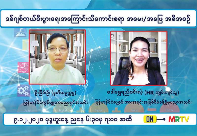 ကိုဗစ် - ၁၉ ရောဂါ ဖြစ်ပွားမှုကာလအတွင်း စီးပွားရေးလုပ်ငန်းများ ပြန်လည်လုပ်ကိုင်လည်ပတ်နိုင်ရန် ရည်ရွယ်ချက်ဖြင့် ပြည်သူကို ပညာပေးမျှဝေပေးမည့် ဒစ်ဂျစ်တယ် စီးပွားရေးအကြောင်း သိကောင်းစရာ အမေး / အဖြေ အစီအစဉ်ကို မြန်မာ့အသံနှင့် ရုပ်မြင်သံကြားက ဒီဇင်ဘာ ၉ ရက် ညနေ ၆ နာရီခွဲတွင် ထုတ်လွှင့်ပြသခဲ့ရာ ပြည်သူများသိရှိနိုင် ရန်အတွက် ပြန်လည်ဖော်ပြလိုက်ပါသည်။