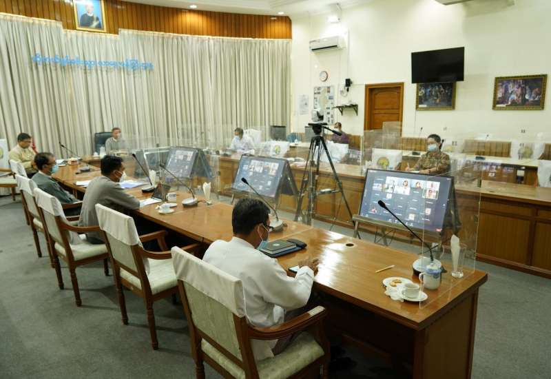 ပဲခူးတိုင်းဒေသကြီးအစိုးရအဖွဲ့ရုံး၊ တော်ဝင်ဟံသာခန်းမ၌ ဒီဇင်ဘာ ၃ ရက်နေ့ မွန်းလွဲ ၂ နာရီက တင်ဒါလုပ်ငန်းဆိုင်ရာ ညှိနှိုင်းအစည်းအဝေးအား Online Meeting စနစ်ဖြင့် ကျင်းပခဲ့သည်။