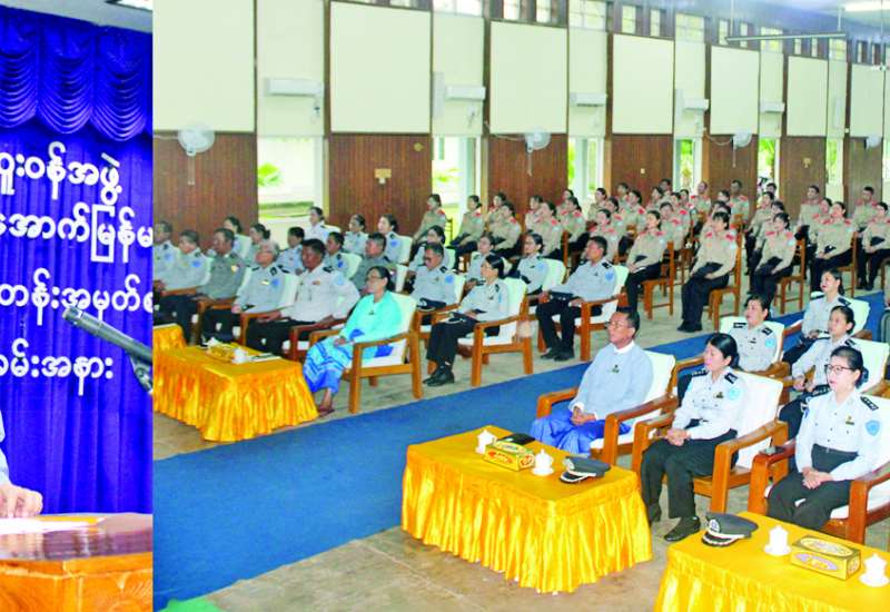 အဆင့်မြင့်အရာထမ်းသင်တန်း အမှတ်စဉ်(၂၇)၏ သင်တန်းဆင်းပွဲကို နိုင်ငံ့ဝန်ထမ်းတက္ကသိုလ် (အောက်မြန်မာပြည်)၌ ယနေ့ကျင်းပရာ ပြည်ထောင်စုရာထူးဝန်အဖွဲ့ဥက္ကဋ္ဌ ဦးစိုးမင်းဦး၊ အဖွဲ့ဝင်ဦးစိုးတင့်၊ တာဝန်ရှိသူများနှင့် သင်တန်းသား သင်တန်းသူများ တက်ရောက်ကြသည်။