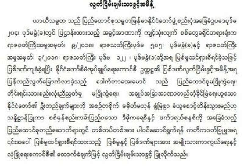 ရန်ကုန်မြို့နှင့် မန္တလေးမြို့အတွက် ရည်ညွှန်းလက်ကားဈေးနှုန်းများနှင့် ပြည်ထောင်စုနယ်မြေ နေပြည်တော်၊ တိုင်းဒေသကြီး/ပြည်နယ် မြို့တော်များအတွက် ရည်ညွှန်းလက်လီဈေးနှုန်းများ