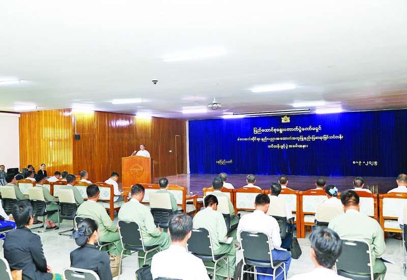 မြန်မာအီလက်ထရောနစ် မဲပေးစက်(MEVM)ဆိုင်ရာ နည်းပညာအထောက် အကူပြု နည်းပြဆရာဖြစ်သင်တန်း ဖွင့်ပွဲအခမ်းအနားကို ယနေ့နံနက်ပိုင်းတွင် ပြည်ထောင်စုရွေးကောက်ပွဲကော်မရှင်ရုံး တိုးချဲ့ရုံးအဆောက်အအုံသစ်၌ကျင်းပရာ ပြည်ထောင်စုရွေးကောက်ပွဲကော်မရှင်ဥက္ကဋ္ဌ ဦးသန်းစိုး၊ တာဝန်ရှိသူများ၊ သင်တန်းနည်းပြများနှင့် သင်တန်းသား သင်တန်းသူများ တက်ရောက်ကြသည်။