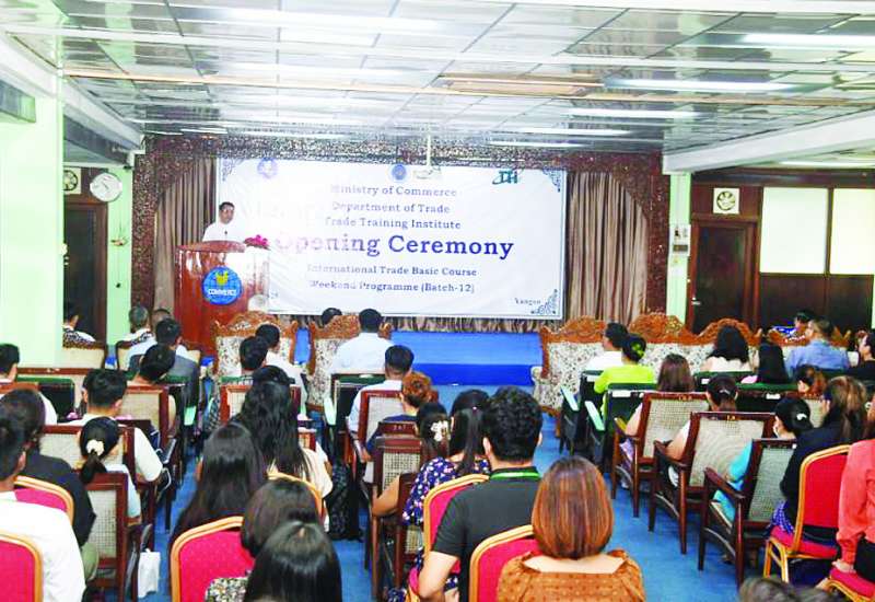 အပြည်ပြည်ဆိုင်ရာကုန်သွယ်မှုအခြေခံသင်တန်း (စနေ၊ တနင်္ဂနွေ) အမှတ်စဉ်(၁၂) သင်တန်းဖွင့်ပွဲအခမ်းအနားကို ယမန်နေ့နံနက် ၁၀ နာရီခွဲတွင် ရန်ကုန်မြို့ စီးပွားရေးနှင့် ကူးသန်းရောင်းဝယ်ရေးဝန်ကြီးဌာန၊ ကုန်သွယ်ရေးဦးစီးဌာန၊ ပို့ကုန်သွင်းကုန်ရုံးညီလာခံခန်းမ၌ ကျင်းပသည်။