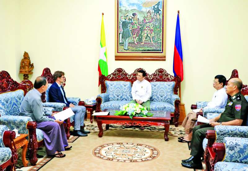လူဝင်မှုကြီးကြပ်ရေးနှင့် ပြည်သူ့အင်အားဝန်ကြီးဌာန ပြည်ထောင်စုဝန်ကြီးဦးမြင့်ကြိုင်သည် အပြည်ပြည်ဆိုင်ရာကြက်ခြေနီကော်မတီ (ICRC) ၏ မြန်မာနိုင်ငံဆိုင်ရာဌာနေကိုယ်စားလှယ် Mr. Arnaud de Baecque ဦးဆောင်သောအဖွဲ့အား ယနေ့မွန်းလွဲပိုင်းတွင် နေပြည်တော်ရှိ အဆိုပါဝန်ကြီးဌာန ပြည်ထောင်စုဝန်ကြီး၏ဧည့်ခန်းမ၌ လက်ခံတွေ့ဆုံသည်။