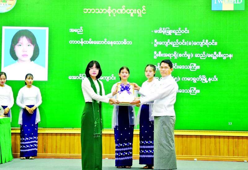 ၂၀၂၄-၂၀၂၅ ပညာသင်နှစ် တက္ကသိုလ်ဝင် စာမေးပွဲ၌ ထူးချွန်စွာ အောင်မြင်ခဲ့ကြသည့် နိုင်ငံ့ဝန်ထမ်းသားသမီး ကျောင်းသား ကျောင်းသူများနှင့် နိုင်ငံ့ဝန်ထမ်းတက္ကသိုလ် သင်တန်းများ၌ ထူးချွန်ဆုရရှိခဲ့ကြသည့် ဝန်ထမ်းများအား ဂုဏ်ပြုချီးမြှင့်ခြင်းအခမ်းအနားကို ယနေ့နံနက်ပိုင်းတွင် နေပြည်တော် ရုံးအမှတ်(၁၅) စုဝေးဆောင်ခန်းမ၌ကျင်းပရာ စိုက်ပျိုးရေး၊ မွေးမြူရေးနှင့် ဆည်မြောင်းဝန်ကြီးဌာန ပြည်ထောင်စုဝန်ကြီး ဦးမင်းနောင်၊ ဒုတိယဝန်ကြီးများ၊ အမြဲတမ်းအတွင်းဝန်၊ ပြည်ထောင်စုဝန်ကြီးရုံး၊ ဦးစီးဌာနများနှင့် တက္ကသိုလ်များမှ အရာထမ်း၊ အမှုထမ်းများ၊ ဂုဏ်ထူးရထူးချွန်ကျောင်းသား ကျောင်းသူများ တက်ရောက်ကြသည်။