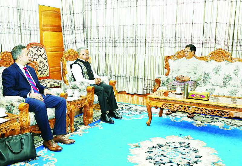 အမျိုးသားလုံခြုံရေးဆိုင်ရာ အကြံပေးပုဂ္ဂိုလ်နှင့် နိုင်ငံတော်သမ္မတရုံးဝန်ကြီးဌာန(၁) ပြည်ထောင်စုဝန်ကြီး ဦးတင်အောင်စန်းသည် မြန်မာနိုင်ငံ ဆိုင်ရာ အိန္ဒိယနိုင်ငံ သံအမတ်ကြီး H.E. Mr. Abhay Thakur နှင့် ကိုယ်စားလှယ်အဖွဲ့အား ယနေ့နံနက်ပိုင်းတွင် အမျိုးသားကာကွယ်ရေးနှင့် လုံခြုံရေးကောင်စီရုံးဧည့်ခန်းမ၌ လက်ခံတွေ့ဆုံသည်။