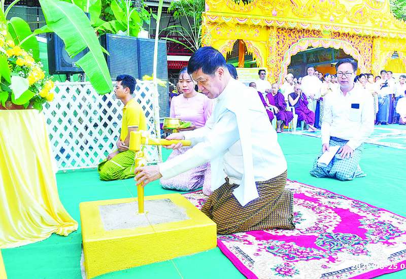 မန္တလေးငလျင်ကြီးကြောင့် ထိခိုက်ပြိုကျပျက်စီးခဲ့သည့် အမရပူရမြို့နယ်ရှိ မဟာဂန္ဓာရုံကျောင်းတိုက်အတွင်း ဂန္ဓကုဋိဘုရားကျောင်းဆောင်အသစ် ပြန်လည်တည်ဆောက်လှူဒါန်းခြင်း ရတနာပန္နက်တင်အခမ်းအနားကို ယနေ့နံနက်ပိုင်းက အဆိုပါကျောင်းတိုက်၌ ကျင်းပရာ နိုင်ငံတော်ဩဝါဒါစရိယ မဟာဂန္ဓာရုံကျောင်းတိုက် မဟာနာယကချုပ်ဆရာတော် ဘဒ္ဒန္တဣန္ဒောဘာသာဘိဝံသအမှူးပြုသော ဆရာတော်သံဃာတော်များ ကြွရောက်ချီးမြှင့်တော်မူသည်။
