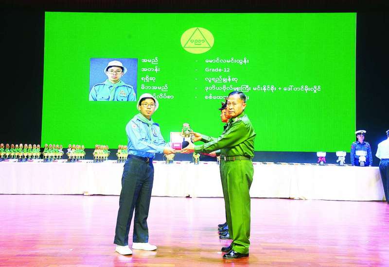 ၂၀၂၄-၂၀၂၅ ပညာသင်နှစ်၊ တက္ကသိုလ်ဝင်စာမေးပွဲ၌ ထူးချွန်စွာအောင်မြင်ခဲ့သည့် တပ်မတော် (ကြည်း၊ ရေ၊ လေ) မှ စစ်သည်များ၊ စစ်မှုထမ်းဆဲ/စစ်မှုထမ်းဟောင်း မိသားစုဝင်သားသမီးများ၊ စစ်သည်အစားခန့်အရပ်သားဝန်ထမ်းများ၏ သားသမီးများနှင့် လူရည်ချွန်ဆုရရှိသော ကျောင်းသား၊ ကျောင်းသူများ၊ နိုင်ငံတော်အဆင့် ဆောင်းပါး၊ စာစီစာကုံး၊ ပန်းချီ၊ ကာတွန်းနှင့် သင်္ချာစွမ်းရည်ဆုရ ကျောင်းသား၊ ကျောင်းသူများအား ဂုဏ်ပြုဆုချီးမြှင့်ခြင်းအခမ်းအနားကို ယနေ့မွန်းလွဲပိုင်းတွင် နေပြည်တော်ရှိ ဇေယျာသီရိဗိမာန်၌ ကျင်းပပြုလုပ်ရာ နိုင်ငံတော်လုံခြုံရေးနှင့်အေးချမ်းသာယာရေးကော်မရှင်ဥက္ကဋ္ဌ တပ်မတော်ကာကွယ်ရေးဦးစီးချုပ် ဗိုလ်ချုပ်မှူးကြီး မင်းအောင်လှိုင်ကိုယ်စား နိုင်ငံတော်လုံခြုံရေးနှင့်အေးချမ်းသာယာရေးကော်မရှင်ဒုတိယဥက္ကဋ္ဌ ဒုတိယတပ်မတော်ကာကွယ်ရေးဦးစီးချုပ် ကာကွယ်ရေးဦးစီးချုပ် (ကြည်း) ဒုတိယဗိုလ်ချုပ်မှူးကြီးစိုးဝင်း တက်ရောက်ဂုဏ်ပြုအမှာစကားပြောကြားပြီး ဂုဏ်ပြုဆုများ ပေးအပ်ချီးမြှင့်သည်။