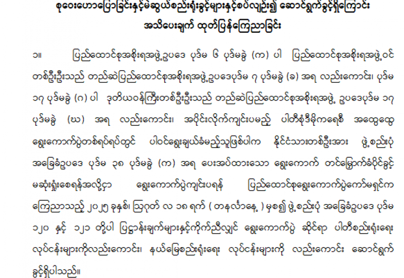 ရန်ကုန်မြို့နှင့် မန္တလေးမြို့အတွက် ရည်ညွှန်းလက်ကားဈေးနှုန်းများနှင့် ပြည်ထောင်စုနယ်မြေ နေပြည်တော်၊ တိုင်းဒေသကြီး/ပြည်နယ် မြို့တော်များအတွက် ရည်ညွှန်းလက်လီဈေးနှုန်းများ