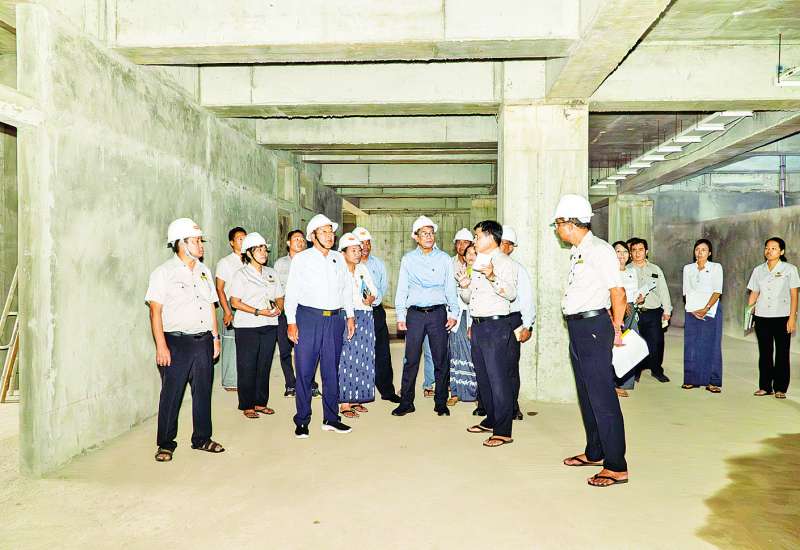 ဆောက်လုပ်ရေးဝန်ကြီးဌာန ဒုတိယဝန်ကြီး ဦးမျိုးမြင့်သည် တာဝန်ရှိသူများနှင့်အတူ ယနေ့နံနက်ပိုင်းတွင် ရန်ကုန်အရှေ့ပိုင်း ခရိုင်ဒဂုံမြို့သစ်(ဆိပ်ကမ်း) မြို့နယ်၌ အဆောက်အဦဦးစီးဌာန အဆောက်အဦအထူးအဖွဲ့ (၁) မှ တာဝန်ယူတည်ဆောက်လျက်ရှိသော အမျိုးသားကင်ဆာရောဂါကုသရေးဌာန (Oncology Unit) အဆောက်အအုံဆောက်လုပ်ပြီးစီးမှုအခြေအနေများကို ကြည့်ရှုစစ်ဆေးသည်။