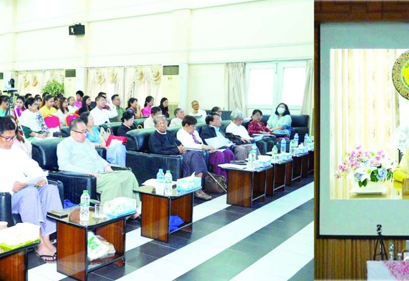 မြန်မာ့အနာဂတ်မျက်နှာစာ လူငယ်မဟာဗျူဟာဖိုရမ်-၂၀၂၅ အောင်မြင်စွာကျင်းပနိုင်ရေးအတွက် ညှိနှိုင်းအစည်းအဝေးကို ယနေ့နံနက်ပိုင်းတွင် နေပြည်တော် ရုံးအမှတ်(၃၁)ရှိ အားကစားနှင့်လူငယ်ရေးရာဝန်ကြီးဌာန စုပေါင်းအစည်းအဝေးခန်းမ၌ကျင်းပရာ ဒုတိယဝန်ကြီး ဦးဇင်မင်းထက်၊ နေပြည်တော်ကောင်စီအဖွဲ့ဝင် ဦးမြင့်စိုး၊ လူငယ်ရေးရာဦးစီးဌာန ညွှန်ကြားရေးမှူးချုပ်၊ ဒုတိယညွှန်ကြားရေးမှူးချုပ်နှင့် တာဝန်ရှိသူများက Inperson စနစ်ဖြင့် လည်းကောင်း၊ တိုင်းဒေသကြီးနှင့်ပြည်နယ်လူမှုရေးရာဝန်ကြီးများက Virtual စနစ်ဖြင့် လည်းကောင်း တက်ရောက်ကြသည်။