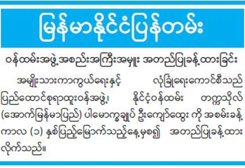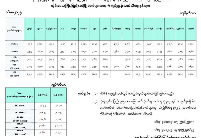 ရန်ကုန်မြို့နှင့် မန္တလေးမြို့အတွက် ရည်ညွှန်းလက်ကားဈေးနှုန်းများနှင့် ပြည်ထောင်စုနယ်မြေ နေပြည်တော်၊ တိုင်းဒေသကြီး/ပြည်နယ် မြို့တော်များအတွက် ရည်ညွှန်းလက်လီဈေးနှုန်းများ