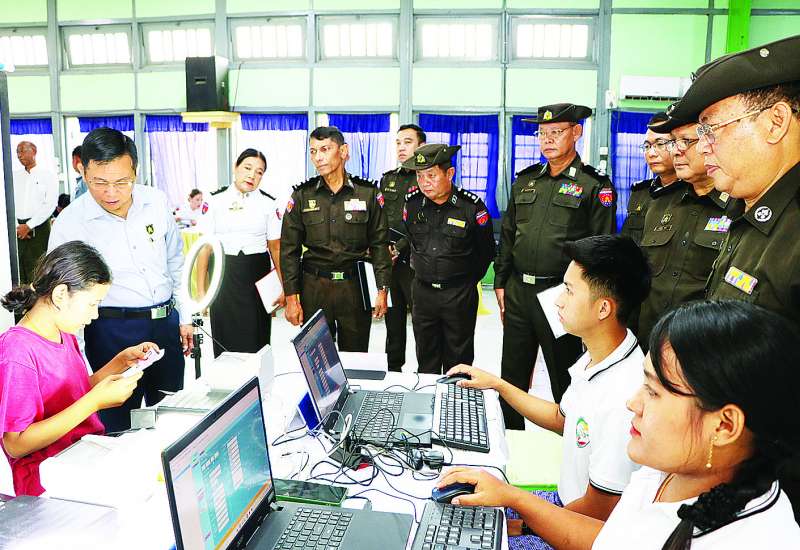 လူဝင်မှုကြီးကြပ်ရေးနှင့် ပြည်သူ့အင်အားဝန်ကြီးဌာန ပြည်ထောင်စုဝန်ကြီး ဦးမြင့်ကြိုင်သည် တာဝန်ရှိသူများနှင့်အတူ ယနေ့နံနက်ပိုင်းတွင် တပ်ကုန်းမြို့နယ် အထွေထွေအုပ်ချုပ်ရေးဦးစီးဌာန အစည်းအဝေးခန်းမ၌ လူဝင်မှုကြီးကြပ်ရေးနှင့် ပြည်သူ့အင်အားဝန်ကြီးဌာန ဝန်ထမ်းများက အိမ်ထောင်စုလူဦးရေစာရင်းနှင့် နိုင်ငံသားစိစစ်ရေးကတ်ပြားပျက်စီး၊ ပျောက်ဆုံးသွားသည့် ဒေသခံပြည်သူများနှင့် နိုင်ငံသားစိစစ်ရေးကတ်ပြား မရရှိသေးသူများအား ပန်းခင်းစီမံချက် အဆင့်(၃)ဖြင့် ဆောင်ရွက်ပေးနေမှုကို ကြည့်ရှုအားပေးသည်။