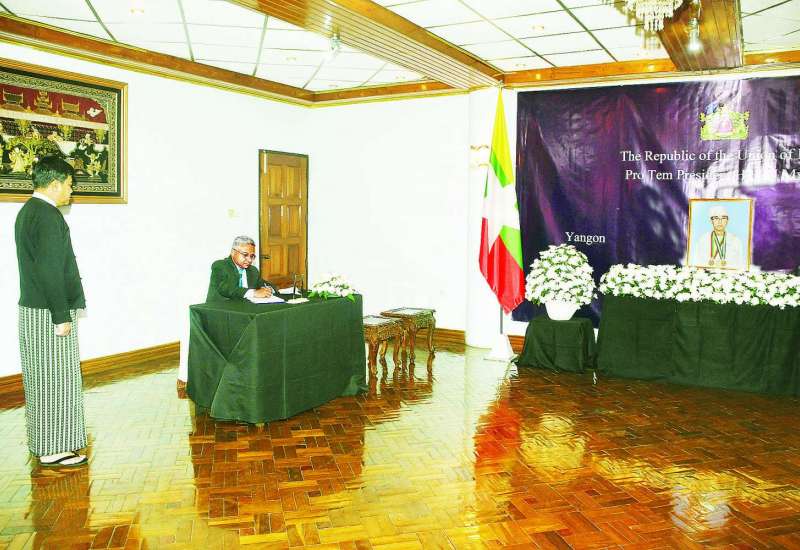 ပြည်ထောင်စုသမ္မတမြန်မာနိုင်ငံတော်၊ ယာယီသမ္မတ ဦးမြင့်ဆွေသည် ဩဂုတ် ၇ ရက်တွင်ကွယ်လွန်ခဲ့သည့်အတွက် ဝမ်းနည်းကြောင်းမှတ်တမ်းစာအုပ်ကို ရန်ကုန်မြို့၊ စကားဝါလမ်းရှိ နိုင်ငံခြားရေးဝန်ကြီးဌာန၌ ဩဂုတ် ၈ ရက်မှစတင်၍ ဖွင့်လှစ်ထားရာ မြန်မာနိုင်ငံဆိုင်ရာ သံအမတ်ကြီးများနှင့် သံရုံးအကြီးအကဲများက ဝမ်းနည်းကြောင်း လာရောက်လက်မှတ်ရေးထိုးခဲ့ကြသည်။