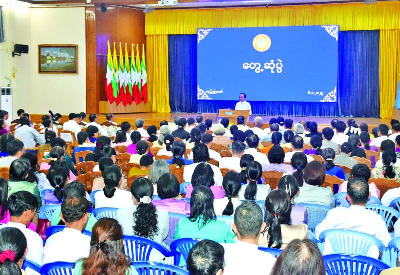 ကျန်းမာရေးဝန်ကြီးဌာန ပြည်ထောင်စုဝန်ကြီး ဒေါက်တာသက်ခိုင်ဝင်းသည် ယနေ့မွန်းလွဲပိုင်းတွင် ဆေးနှင့် ဆေးပညာနှီးနွှယ်တက္ကသိုလ် ပါမောက္ခချုပ်များ၊ ပါမောက္ခ၊ ဌာနမှူးများနှင့် တွေ့ဆုံအမှာစကားပြောကြားသည်။