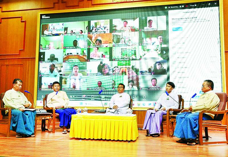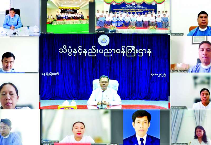 တက္ကသိုလ်များတွင် သုတေသနလုပ်ငန်းများ တွန်းအားပေးဆောင်ရွက်ကြရန် ပညာရေးဝန်ကြီးဌာန ပြည်ထောင်စုဝန်ကြီး ဒေါက်တာချောချောစိန်က ယနေ့တွင် ဒုတိယဝန်ကြီး ဒေါက်တာဇော်မြင့်နှင့် ဦးနေမျိုးလှိုင်၊ တာဝန်ရှိသူများနှင့်အတူ တက္ကသိုလ်၊ ဒီဂရီကောလိပ်များမှ ပါမောက္ခချုပ်များ၊ ကျောင်းအုပ်ကြီးများ၊ ဒုတိယပါမောက္ခချုပ်များ၊ ပါမောက္ခများ၊ တိုင်းဒေသကြီးနှင့် ပြည်နယ်ပညာရေးမှူးများနှင့် အွန်လိုင်းစနစ်ဖြင့် တွေ့ဆုံစဉ် ဆွေးနွေးပြောကြားသည်။