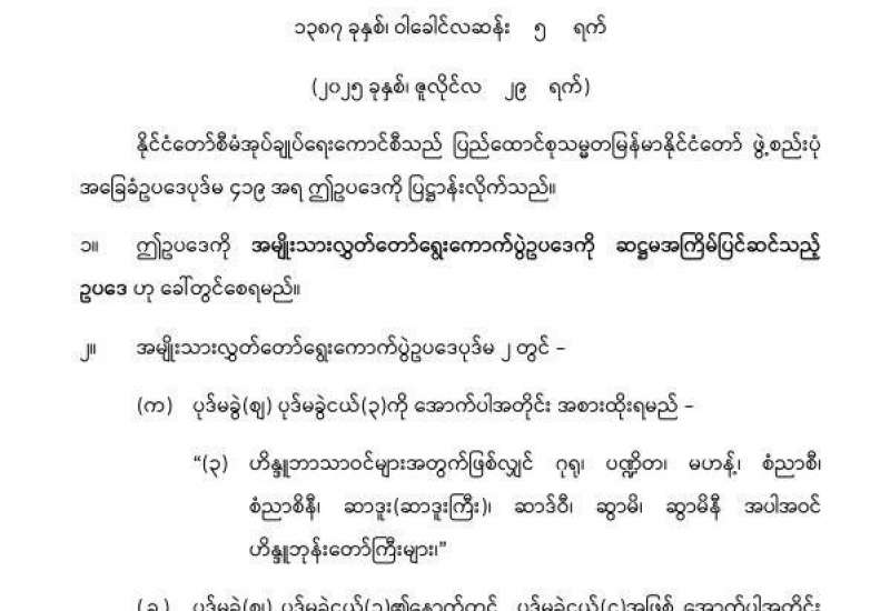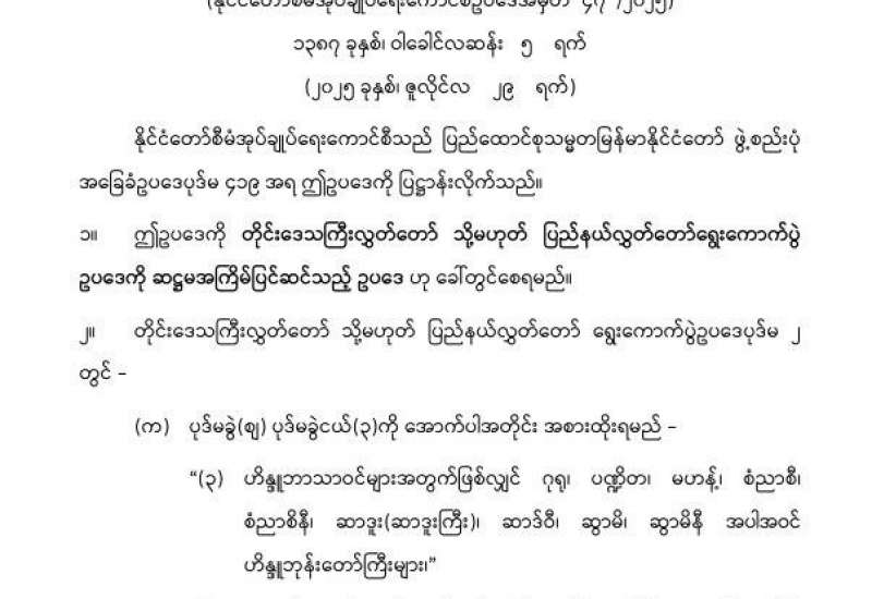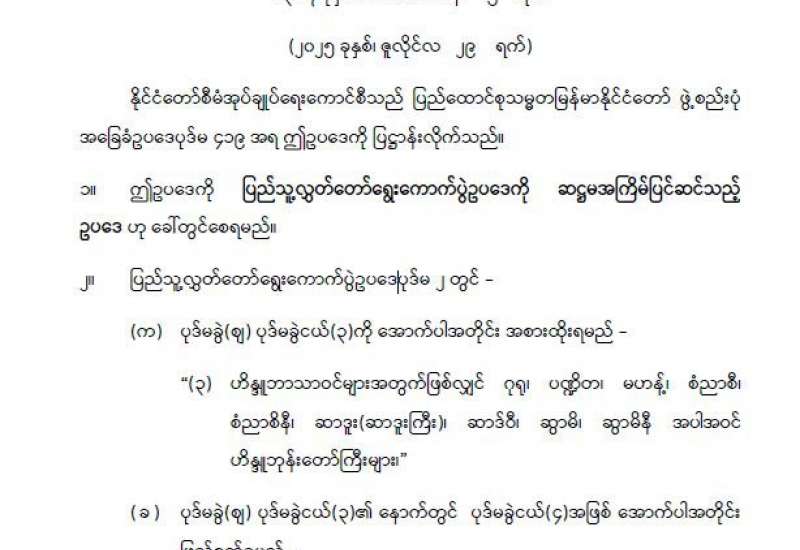 ရန်ကုန်မြို့နှင့် မန္တလေးမြို့အတွက် ရည်ညွှန်းလက်ကားဈေးနှုန်းများနှင့် ပြည်ထောင်စုနယ်မြေ နေပြည်တော်၊ တိုင်းဒေသကြီး/ပြည်နယ် မြို့တော်များအတွက် ရည်ညွှန်းလက်လီဈေးနှုန်းများ