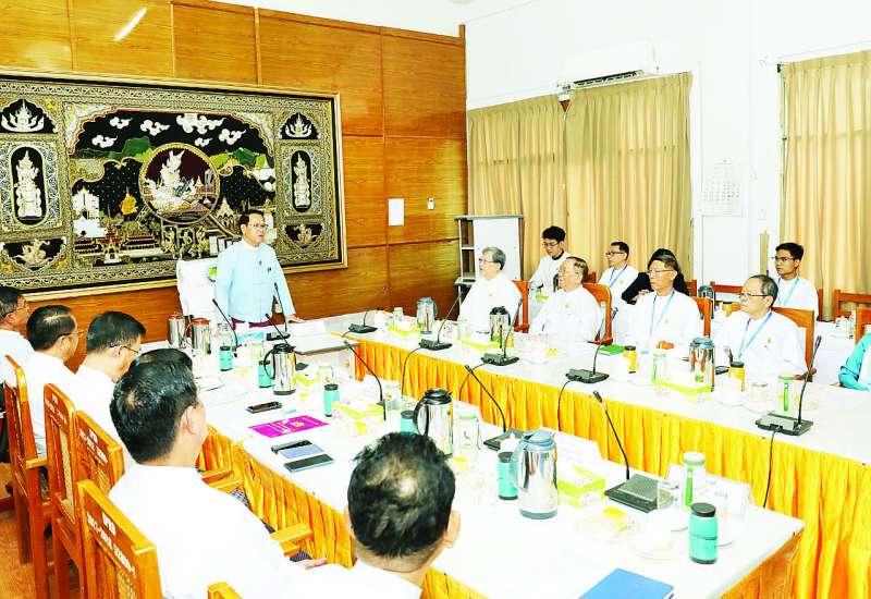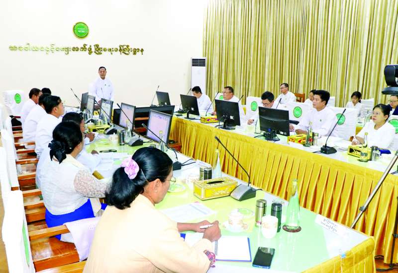 သမဝါယမဦးစီးဌာန၏ မိုးစပါးစိုက်ပျိုးရေးလုပ်ငန်းများ ဆောင်ရွက်ပြီးစီးမှုနှင့် ချေးငွေလုပ်ငန်းကြီးကြပ်မှုဗဟိုကော်မတီအစည်းအဝေးကို ယနေ့နံနက်ပိုင်းက သမဝါယမနှင့်ကျေးလက်ဖွံ့ဖြိုးရေးဝန်ကြီးဌာန ရုံးအမှတ် (၁၆) ၌ ကျင်းပရာ ပြည်ထောင်စုဝန်ကြီး ဦးလှမိုး၊ ဒုတိယဝန်ကြီး ဦးမြင့်စိုး၊ အမြဲတမ်းအတွင်းဝန်နှင့် တာဝန်ရှိသူများ တက်ရောက်ကြသည်။