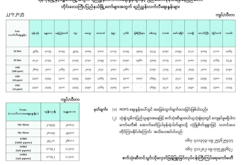 ရန်ကုန်မြို့နှင့် မန္တလေးမြို့အတွက် ရည်ညွှန်းလက်ကားဈေးနှုန်းများနှင့် ပြည်ထောင်စုနယ်မြေ နေပြည်တော်၊ တိုင်းဒေသကြီး/ပြည်နယ် မြို့တော်များအတွက် ရည်ညွှန်းလက်လီဈေးနှုန်းများ