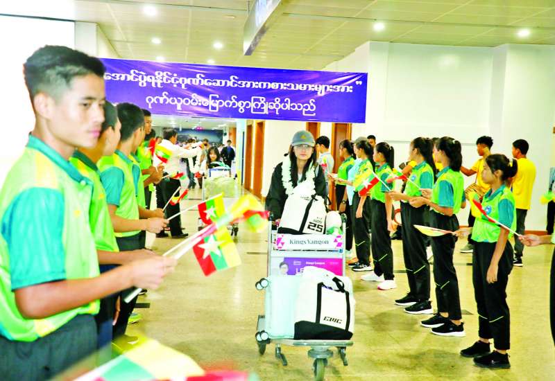 ဆော်ဒီအာရေဗျနိုင်ငံ ရီယာဒ့်မြို့၌ ဇူလိုင် ၁၅ ရက်မှ ၁၉ ရက်အထိ ကျင်းပခဲ့သည့် ကမ္ဘာ့အဆင့်ပြိုင်ပွဲ MLBB Women Invitational 2025 (MWI 2025) ပြိုင်ပွဲသို့ ဝင်ရောက်ယှဉ်ပြိုင်ခဲ့သည့် ကမ္ဘာ့အဆင့် တတိယရရှိခဲ့သော မြန်မာ Esports အားကစားအဖွဲ့သည် ယနေ့ညနေပိုင်းက ရန်ကုန်မြို့သို့ ပြန်လည်ရောက်ရှိလာရာ အားကစားနှင့်ကာယပညာသိပ္ပံ (ရန်ကုန်) ဒုတိယကျောင်းအုပ်ကြီး ဦးအောင်မျိုးဝင်းနှင့် တာဝန်ရှိသူများ၊ မြန်မာနိုင်ငံအီလက်ထရောနစ်အားကစားအဖွဲ့ချုပ် ဒုတိယဥက္ကဋ္ဌ ဦးကျော်ထက်လင်း၊ အမှုဆောင်များ၊ အားကစားနှင့်ကာယပညာသိပ္ပံ (ရန်ကုန်) သင်တန်းသား သင်တန်းသူများနှင့် မိဘဆွေမျိုးများက ရန်ကုန်အပြည်ပြည်လေဆိပ်၌ သောင်းသောင်းဖြဖြကြိုဆိုခဲ့ကြသည်။