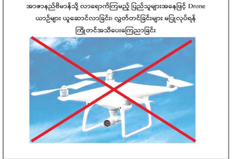 အာဇာနည်ဗိမာန်သို့ လာရောက်ကြမည့် ပြည်သူများအနေဖြင့် Drone ယာဉ်များ ယူဆောင်လာခြင်း၊ လွှင့်တင်ခြင်းများ မပြုလုပ်ရန် ကြိုတင်အသိပေးကြေညာခြင်း