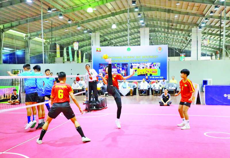 ပိုက်ကျော်ခြင်းအားကစားနည်းမှ ပဏာမလက်ရွေးစင်အားကစားသမားများ လက်ရည်ဆန်းစစ်ခြင်းနှင့် ၂၀၂၅ ခုနှစ် အပြည်ပြည်ဆိုင်ရာ အိုလံပစ်နေ့အထိမ်းအမှတ် ပိုက်ကျော်ခြင်းပြိုင်ပွဲကို ယနေ့နံနက်ပိုင်းတွင် နေပြည်တော် ဝဏ္ဏသိဒ္ဓိအားကစားကွင်းရှိ ပိုက်ကျော်ခြင်းလေ့ကျင့်ရေးရုံ၌ ကျင်းပရာ မြန်မာနိုင်ငံ အိုလံပစ်ကော်မတီဥက္ကဋ္ဌ အားကစားနှင့်လူငယ်ရေးရာဝန်ကြီးဌာန ပြည်ထောင်စုဝန်ကြီး Jeng Phang နော်တောင်၊ ဒုတိယဝန်ကြီး ဦးဇင်မင်းထက်၊ အားကစားနှင့်ကာယပညာဦးစီးဌာန ညွှန်ကြားရေးမှူးချုပ်နှင့် တာဝန်ရှိသူများ၊ မြန်မာနိုင်ငံပိုက်ကျော်ခြင်းအားကစားအဖွဲ့ချုပ်ဥက္ကဋ္ဌနှင့် တာဝန်ရှိသူများ တက်ရောက်ကြည့်ရှုအားပေးသည်။