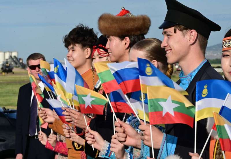 ရုရှားဖက်ဒရေးရှင်းနိုင်ငံ၊ Buryatia ပြည်နယ်သို့ တရားဝင်ချစ်ကြည်ရေးခရီး ရောက်ရှိနေသည့် နိုင်ငံတော်စီမံအုပ်ချုပ်ရေးကောင်စီဥက္ကဋ္ဌ နိုင်ငံတော်ဝန်ကြီးချုပ် ဗိုလ်ချုပ်မှူးကြီး မင်းအောင်လှိုင်နှင့် ဇနီး ဒေါ်ကြူကြူလှ ဦးဆောင်သော မြန်မာအဆင့်မြင့်ကိုယ်စားလှယ်အဖွဲ့အား ယနေ့ညနေပိုင်းတွင် Buryatia ပြည်နယ်၊ ပြည်နယ်အကြီးအကဲ H.E.Mr. Alexey Sambuevich Tsydenov က ဂုဏ်ပြုညစာဖြင့် တည်ခင်းဧည့်ခံသည်။
