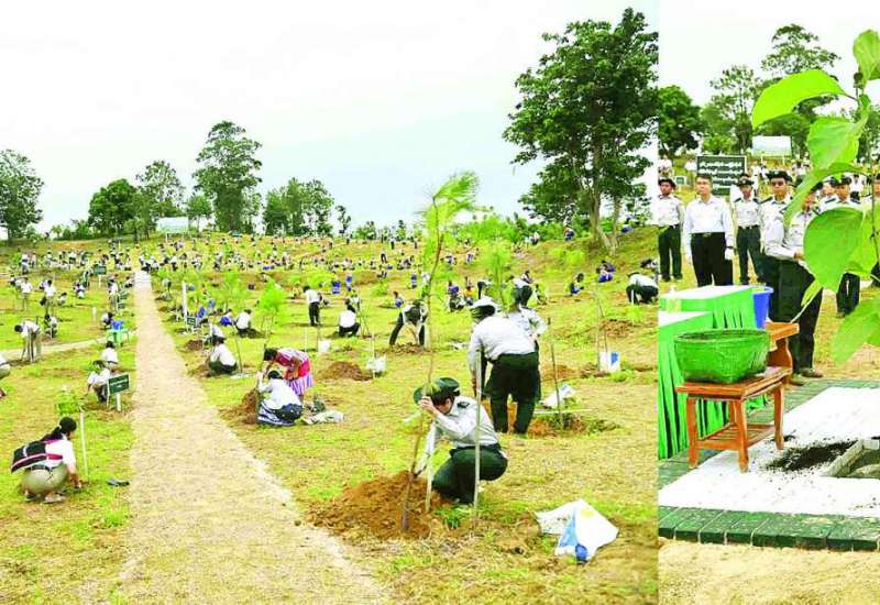 နေပြည်တော် စိမ်းလန်းစိုပြည်စေရေးနှင့် သဘာဝပတ်ဝန်းကျင်ထိန်းသိမ်းနိုင်ရေးအတွက် ယနေ့နံနက်ပိုင်းတွင် ဒက္ခိဏသီရိမြို့နယ် ရန်အောင်မြင်ဆည်စိမ်းလန်းမြေနေရာ၌ နေပြည်တော်စည်ပင်သာယာရေးကော်မတီက မိုးရာသီသစ်ပင်စိုက်ပျိုးပွဲကို ကျင်းပရာ နေပြည်တော်ကောင်စီဥက္ကဋ္ဌ ဦးသန်းထွန်းဦး၊ နေပြည်တော်ကောင်စီဝင်များ၊ နေပြည်တော်စည်ပင်သာယာရေးကော်မတီ ဒုတိယမြို့တော်ဝန်နှင့် ကော်မတီဝင်များ၊ နေပြည်တော်စည်ပင်သာယာရေးကော်မတီမှ ဝန်ထမ်းများ တက်ရောက်ကြသည်။
