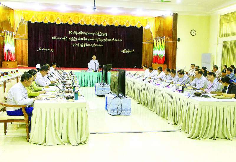 တိုင်းဒေသကြီး/ ပြည်နယ်အစိုးရများ၏ အခွန်ရငွေတိုးတက်ရရှိစေရေး လုပ်ငန်းညှိနှိုင်းအစည်းအဝေးကို ယနေ့မွန်းလွဲပိုင်းတွင် စီမံကိန်းနှင့်ဘဏ္ဍာရေးဝန်ကြီးဌာန ရုံးအမှတ် (၃၂) အစည်းအဝေးခန်းမ၌ကျင်းပရာ ဒုတိယဝန်ကြီးချုပ်နှင့် စီမံကိန်းနှင့်ဘဏ္ဍာရေးဝန်ကြီးဌာန ပြည်ထောင်စုဝန်ကြီး ဦးဝင်းရှိန်၊ နေပြည်တော်စည်ပင်သာယာရေးကော်မတီဥက္ကဋ္ဌ၊ ရန်ကုန်မြို့တော်စည်ပင်သာယာရေးကော်မတီဥက္ကဋ္ဌ၊ မန္တလေးတိုင်းဒေသကြီး သယံဇာတရေးရာဝန်ကြီး၊ စီမံကိန်းနှင့်ဘဏ္ဍာရေးဝန်ကြီးဌာန ဒုတိယဝန်ကြီး ဦးမင်းထွဋ်၊ တိုင်းဒေသကြီး/ ပြည်နယ်အစိုးရအဖွဲ့များမှ စီးပွားရေးရာဝန်ကြီးများနှင့် တာဝန်ရှိသူများ တက်ရောက်ကြသည်။