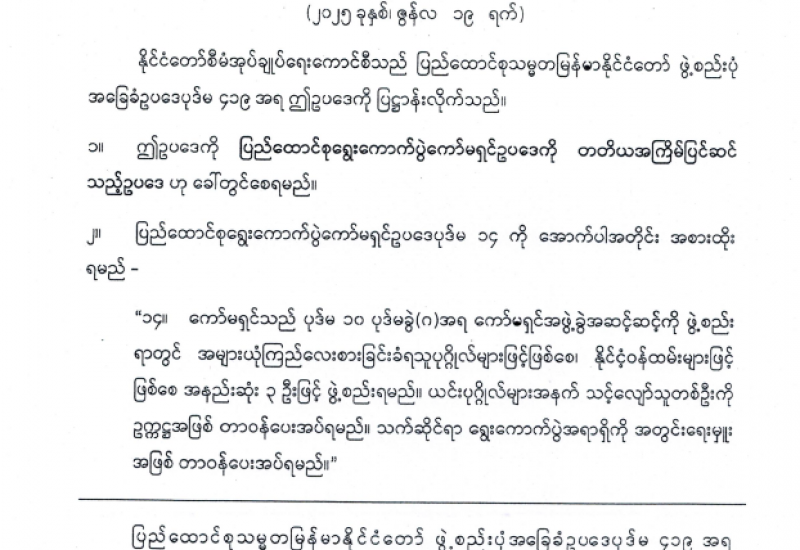 ပြည်ထောင်စုရွေးကောက်ပွဲကော်မရှင်ဥပဒေကို တတိယအကြိမ်ပြင်ဆင်သည့်ဥပဒေ