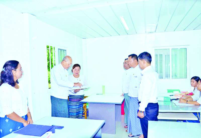 အားကစားနှင့် လူငယ်ရေးရာဝန်ကြီးဌာန ပြည်ထောင်စုဝန်ကြီး Jeng Phang နော်တောင်သည် ဒုတိယဝန်ကြီးများဖြစ်ကြသည့် ဦးထိန်လင်း၊ ဦးဇင်မင်းထက်၊ ဌာနဆိုင်ရာ တာဝန်ရှိသူများနှင့်အတူ ယနေ့နံနက်ပိုင်းတွင် Basha တည်ဆောက်ပြီးစီးမှုနှင့် Prefabricated Offices တွင် ဝန်ထမ်းများ ရုံးလုပ်ငန်းဆောင်ရွက်နေမှုကို လှည့်လည်ကြည့်ရှုစစ်ဆေးသည်။