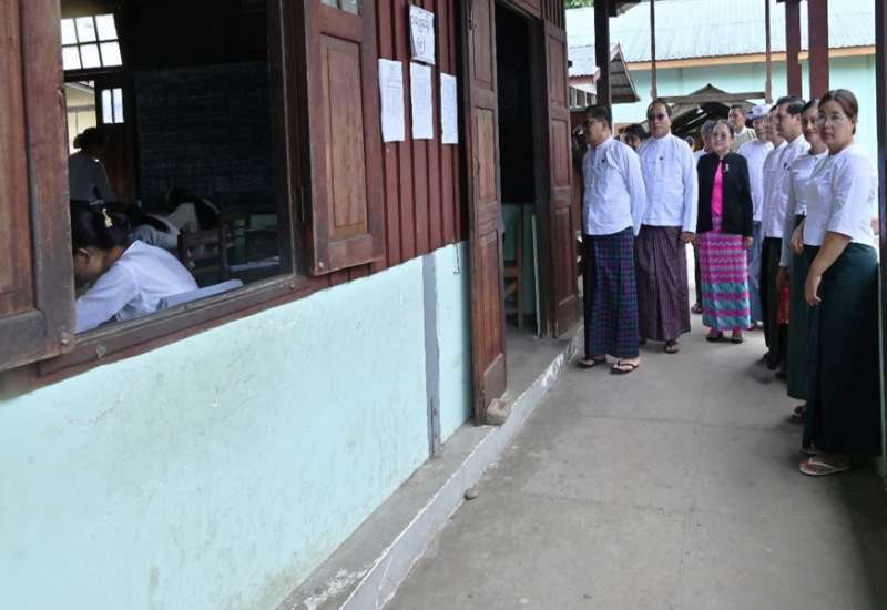 ပညာရေးဝန်ကြီးဌာန ပြည်ထောင်စုဝန်ကြီး ဒေါက်တာညွန့်ဖေသည် ဒုတိယဝန်ကြီး ဦးနေမျိုးလှိုင်၊ ဌာနဆိုင်ရာ တာဝန်ရှိသူများနှင့်အတူ ယနေ့နံနက်ပိုင်းတွင် မိတ္ထီလာမြို့အမှတ် (၁) အခြေခံပညာအထက်တန်း ကျောင်းစာစစ်ဌာန၌ ကျောင်းသား ကျောင်းသူများ တက္ကသိုလ်ဝင်စာမေးပွဲ တတိယနေ့ သင်္ချာဘာသာရပ် အေးချမ်းစွာဖြေဆိုနေမှုကို လှည့်လည်ကြည့်ရှုအားပေးပြီး လိုအပ်သည်များကို ဖြည့်ဆည်းဆောင်ရွက်ပေးသည်။