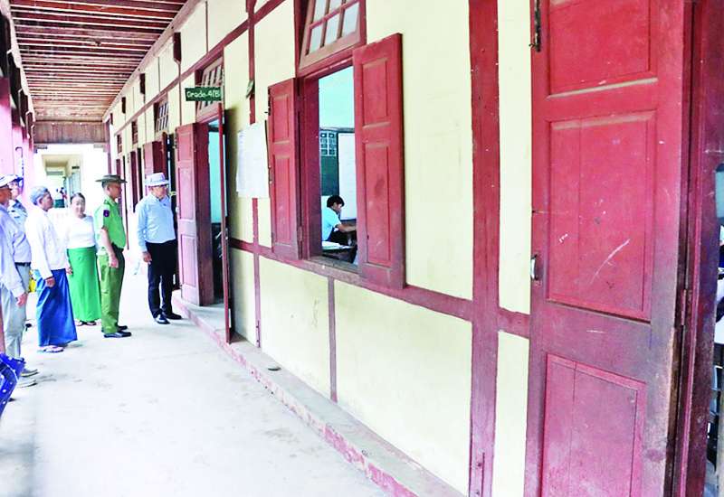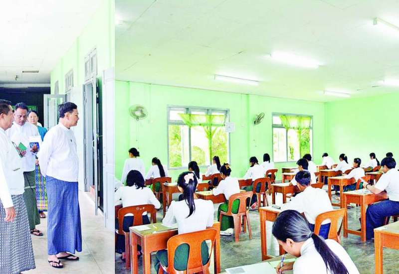 ပညာရေးဝန်ကြီးဌာန ဒုတိယဝန်ကြီး ဒေါက်တာဇော်မြင့်နှင့် ဦးနေမျိုးလှိုင်သည် ပညာရေးဝန်ကြီးဌာနရှိ ဦးစီးဌာနများမှ ညွှန်ကြားရေးမှူးချုပ်များ၊ နေပြည်တော်ကောင်စီနယ်မြေ ပညာရေးမှူးနှင့်အတူ ယနေ့နံနက်ပိုင်းတွင် နေပြည်တော်ကောင်စီနယ်မြေ ဇေယျာသီရိမြို့နယ် အမှတ် (၁) အခြေခံပညာအထက်တန်းကျောင်းရှိ တက္ကသိုလ်ဝင်စာမေးပွဲစာစစ်ဌာနသို့ ရောက်ရှိကာ တက္ကသိုလ်ဝင်စာမေးပွဲပထမနေ့ မြန်မာစာဘာသာ ဖြေဆိုနေမှုကို လှည့်လည်ကြည့်ရှုအားပေးသည်။