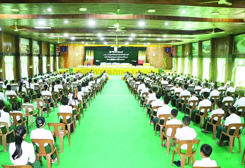 ၂၀၂၅-၂၀၂၆ ပညာသင်နှစ်တွင် တက်ရောက်ပညာသင်ကြားကြမည့် မြောက် ပိုင်းတိုင်းစစ်ဌာနချုပ်မှ တပ်မတော်သားမိသားစုဝင် ကျောင်းသား ကျောင်းသူများနှင့် အောင်စိုးမိုး (၁) စစ်မှုထမ်းဟောင်းအိမ်ရာရှိ ကျောင်းသား ကျောင်းသူများအတွက် (ပထမအကြိမ်) ကျောင်းဝတ်စုံနှင့် စာရေးကိရိယာများ ပေးအပ်ပွဲကို ယနေ့နံနက်ပိုင်းတွင် တိုင်းစစ်ဌာနချုပ် ဗလမင်းထင်ခန်းမ၌ ပြုလုပ်ရာ တိုင်းမှူး ဗိုလ်ချုပ်အောင်ဇော်ထွေးနှင့် အဖွဲ့ဝင်များ၊ စစ်မှုထမ်းဟောင်းအဖွဲ့ဝင်များ၊ အရာရှိ၊ စစ်သည်၊ မိသားစုဝင်များ၊ ဆရာ ဆရာမများ၊ ကျောင်းသားမိဘများနှင့် ကျောင်းသား ကျောင်းသူများ တက်ရောက်ကြသည်။