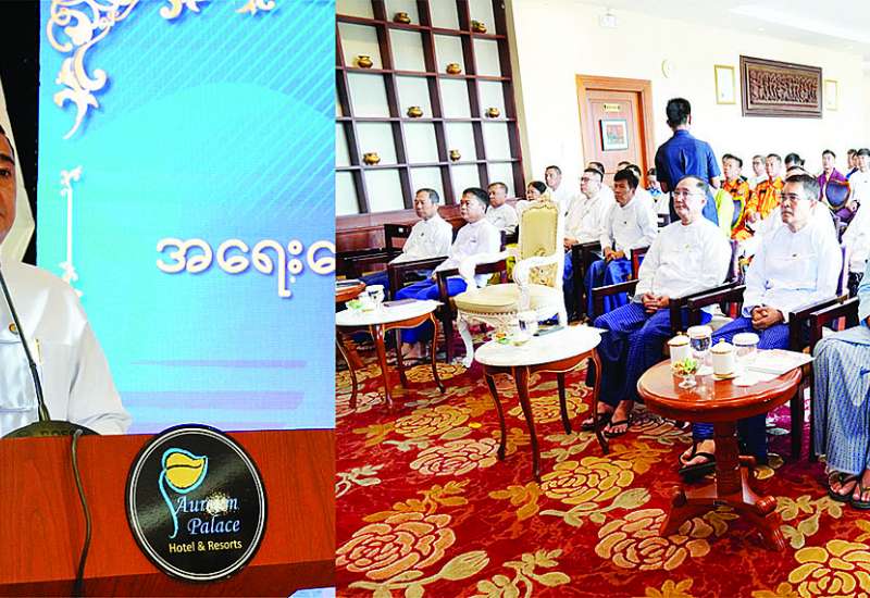 ထိရောက်သည့် အခွန်စနစ်ဖြစ်ပေါ်စေရေးအတွက် ဆောင်ရွက်မည့်အစီအမံများနှင့်စပ်လျဉ်း၍ စီမံချက်ရေးဆွဲပြုစုတင်ပြရေးအစည်းအဝေးကို ယနေ့နံနက်ပိုင်းတွင် နေပြည်တော်ရှိ စီမံကိန်းနှင့် ဘဏ္ဍာရေးဝန်ကြီးဌာနရုံးအမှတ် (၃၂) အစည်းအဝေးခန်းမ၌ကျင်းပရာ စီမံကိန်းနှင့်ဘဏ္ဍာရေးဝန်ကြီးဌာန ဒုတိယဝန်ကြီး ဦးမင်းထွဋ်၊ နေပြည်တော်ကောင်စီဝင်၊ တိုင်းဒေသကြီး၊ ပြည်နယ်များမှ စီးပွားရေးရာဝန်ကြီးများနှင့် ဌာနဆိုင်ရာတာဝန်ရှိသူများ တက်ရောက်ကြသည်။