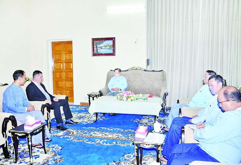 စက်မှုဝန်ကြီးဌာန ပြည်ထောင်စုဝန်ကြီး ဒေါက်တာချာလီသန်းသည် ရုရှားဖက်ဒရေးရှင်းနိုင်ငံ Tyazh-promexport Co., Ltd. (TPE) မှ Chief Engineer Mr. Akeksandr Senin အား ယနေ့မွန်းလွဲပိုင်းတွင် စက်မှုဝန်ကြီးဌာန ရုံးအမှတ် (၃၀) ဧည့်ခန်းမဆောင်၌ လက်ခံတွေ့ဆုံသည်။