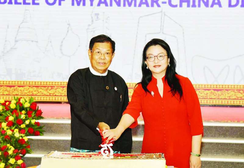 မြန်မာ-တရုတ် သံတမန်ဆက်ဆံရေး (၇၅) နှစ်မြောက် စိန်ရတုအထိမ်းအမှတ် ညစာစားပွဲအခမ်းအနားကို ယနေ့ညနေ ၆ နာရီတွင် နေပြည်တော်ရှိ မင်္ဂလာသီရိဟိုတယ်၌ ကျင်းပရာ ဒုတိယဝန်ကြီးချုပ်နှင့် နိုင်ငံခြားရေးဝန်ကြီးဌာန ပြည်ထောင်စုဝန်ကြီး ဦးသန်းဆွေ၊ ဒုတိယဝန်ကြီးချုပ်နှင့် ပြည်ထောင်စုဝန်ကြီးများ၊ ပြည်ထောင်စုအဆင့်ပုဂ္ဂိုလ်များ၊ ဒုတိယဝန်ကြီးများ၊ မြန်မာနိုင်ငံဆိုင်ရာ တရုတ်သံအမတ်ကြီး မစ္စမာကျား၊ ရန်ကုန်မြို့အခြေစိုက် နိုင်ငံခြားသံရုံးများမှ သံအမတ်ကြီးများ၊ သံရုံးအကြီးအကဲများ၊ သံတမန်များ၊ သက်ဆိုင်ရာဝန်ကြီးဌာနများမှ တာဝန်ရှိသူများနှင့် ဖိတ်ကြားထားသော ဧည့်သည်များ တက်ရောက်ကြသည်။