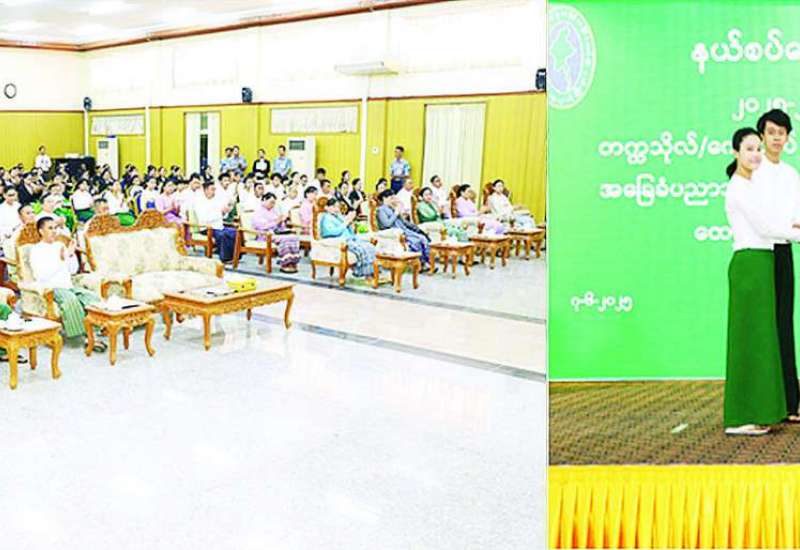 ၂၀၂၅-၂၀၂၆ ပညာသင်နှစ် တက္ကသိုလ်၊ ကောလိပ်နှင့်အခြေခံပညာမူလတန်းမှ အထက်တန်းအဆင့်ကျောင်းများသို့ တက်ရောက်ပညာသင်ကြားလျက်ရှိသည့် နယ်စပ်ရေးရာဝန်ကြီးဌာနမှ ဝန်ထမ်းများ၏ သားသမီးများ ပညာသင်စရိတ်၊ ကျောင်းဝတ်စုံနှင့် ဗလာစာအုပ်များ ပေးအပ်ခြင်းအခမ်းအနားကို ယနေ့နံနက်ပိုင်းတွင် နယ်စပ်ရေးရာဝန်ကြီးဌာန ဧရာဝတီခန်းမ၌ ကျင်းပသည်။