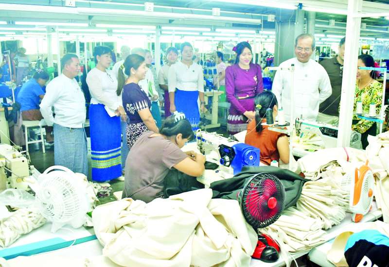အလုပ်သမားဝန်ကြီးဌာန ဒုတိယဝန်ကြီး ဦးဝင်းရှိန်သည် ရန်ကုန်တိုင်းဒေသကြီးရှိ အလုပ်သမားရေးရာဌာနများမှ တာဝန်ခံအရာထမ်းများနှင့်အတူ ယနေ့နံနက်ပိုင်းတွင် ရန်ကုန်တိုင်းဒေသကြီး လှိုင်သာယာ(အနောက်ပိုင်း)မြို့နယ် ငွေပင်လယ်စက်မှုဇုန်ရှိ Hanfex Co., Ltd. အထည်ချုပ် စက်ရုံလုပ်ငန်းခွင်အတွင်း လှည့်လည်ကြည့်ရှုသည်။