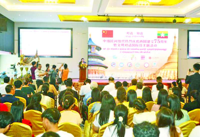 တရုတ်-မြန်မာ အစိုးရမဟုတ်သော အဖွဲ့အစည်းများ နှစ်နိုင်ငံသံတမန်ဆက်ဆံရေးထူထောင်ခြင်း (၇၅)နှစ်မြောက်ကို လှိုက်လှိုက်လှဲလှဲဂုဏ်ပြုခြင်းနှင့် ယဉ်ကျေးမှုဆွေးနွေးပွဲ နိုင်ငံတကာနေ့ အထိမ်းအမှတ်အစီအစဉ်ကို ယနေ့နံနက်ပိုင်းက ရန်ကုန်မြို့ မရမ်းကုန်းမြို့နယ် မင်းဓမ္မလမ်းရှိ Hotel Ru Yi ၌ ကျင်းပသည်။