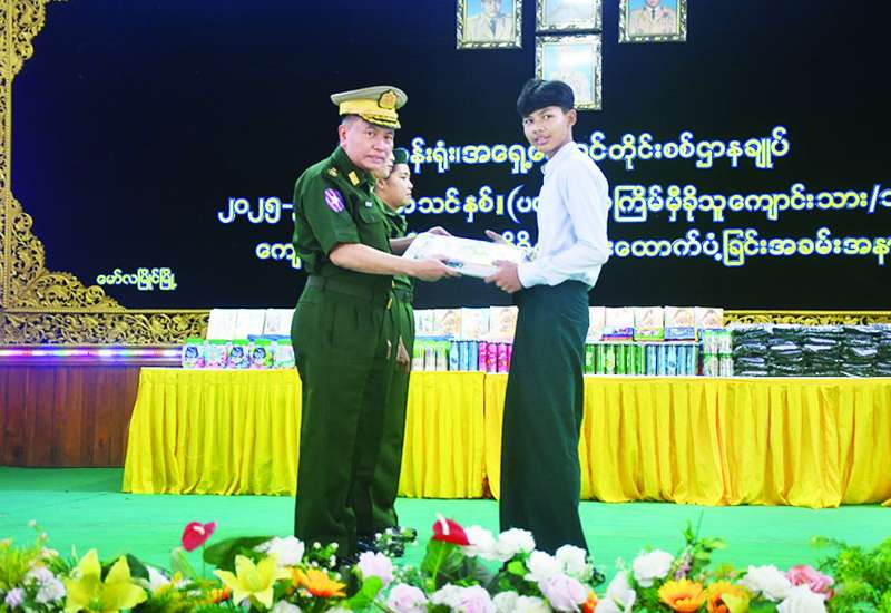၂၀၂၅-၂၀၂၆ ပညာသင်နှစ်တွင် တက်ရောက် ပညာသင်ကြားကြမည့် ကျောင်းသား ကျောင်းသူများအား ပထမအကြိမ် ကျောင်းဝတ်စုံနှင့် စာရေးကိရိယာများ ပေးအပ်ပွဲကို ယနေ့မွန်းလွဲပိုင်းတွင် အရှေ့တောင်တိုင်းစစ်ဌာနချုပ်၊ အောင်ဆန်းခန်းမ၌ ပြုလုပ်ရာ တိုင်းမှူး ဗိုလ်ချုပ် ကျော်လင်းမောင်နှင့် အရာရှိ၊ စစ်သည်၊ မိသားစုဝင်များ၊ ကျောင်းသား ကျောင်းသူများ တက်ရောက်ကြသည်။