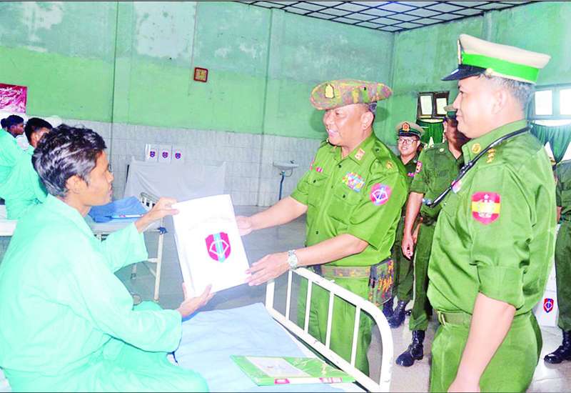 စစ်ကိုင်းတိုင်းဒေသကြီး ဟုမ္မလင်းမြို့ရှိ တပ်မတော်ဆေးရုံ၌ တက်ရောက်ကုသမှုခံယူလျက်ရှိသော သံဃာတော်များ၊ အရာရှိ၊ စစ်သည်၊ မိသားစုဝင်များ၊ မြန်မာနိုင်ငံရဲတပ်ဖွဲ့ဝင်များ၊ ပြည်သူ့စစ် (ဌာနေ) တပ်ဖွဲ့ဝင်များ၊ စစ်မှုထမ်းဟောင်းအဖွဲ့ဝင်များနှင့် ဒေသခံပြည်သူများအား ယနေ့တွင် အနောက်မြောက်တိုင်းစစ်ဌာနချုပ် တိုင်းမှူး ဗိုလ်မှူးချုပ် မျိုးမင်းထွေးနှင့် တာဝန်ရှိသူများက သွားရောက်ကြည့်ရှု၍ တစ်ဦးချင်း၏ ရောဂါဖြစ်ပွားမှု၊ ဆေးကုသပေးထားမှုနှင့် ကျန်းမာရေးတိုးတက်ကောင်းမွန်မှုအခြေအနေများကို မေးမြန်းအားပေးစကားပြောကြားပြီး အာဟာရဖြည့်စားသောက်ဖွယ်ရာများပေးအပ်ကာ ဆေးရုံအတွင်း လိုက်လံကြည့်ရှုစစ်ဆေးသည်။