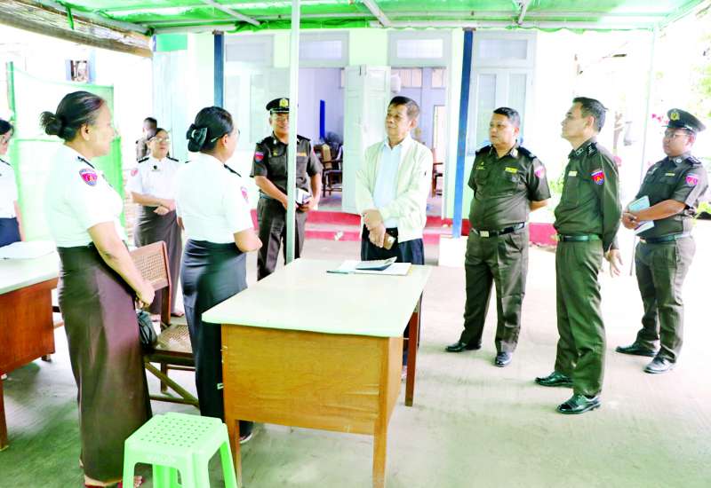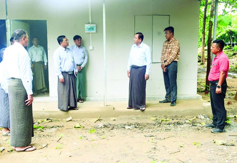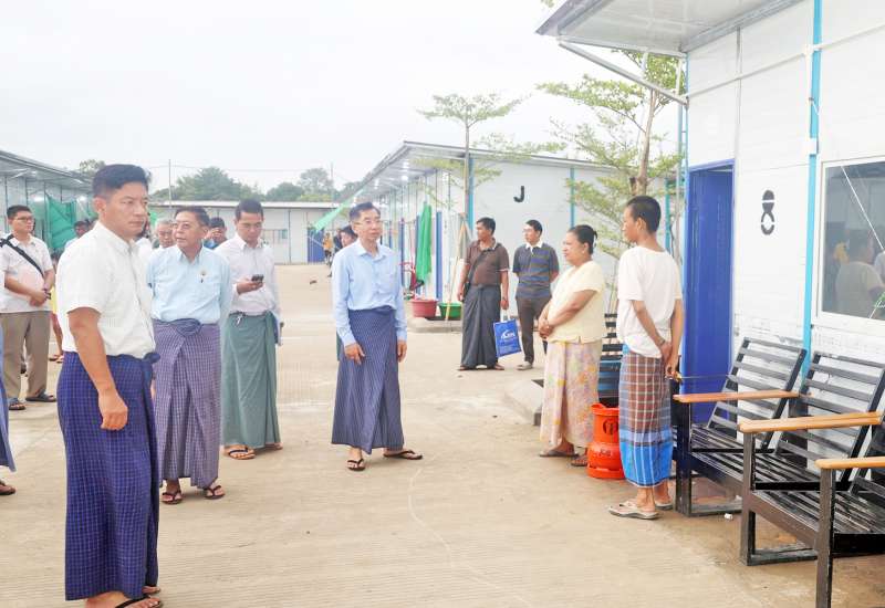 ပြည်ထဲရေးဝန်ကြီးဌာန ပြည်ထောင်စုဝန်ကြီး ဒုတိယဗိုလ်ချုပ်ကြီး ထွန်းထွန်းနောင်သည် ယနေ့ နံနက်ပိုင်းတွင် မြန်မာနိုင်ငံရဲတပ်ဖွဲ့ ရဲချုပ်ဒုတိယရဲဗိုလ်ချုပ်ကြီး ဝင်းဇော်မိုး၊ ပြည်ထဲရေးဝန်ကြီးဌာန အမြဲတမ်းအတွင်းဝန် ဦးခိုင်ထွန်းဦးနှင့်အတူ ပြည်ထဲရေးဝန်ကြီးဌာန ပြည်ထောင်စုဝန်ကြီးရုံး ပြန်လည်ပြုပြင်နေမှု အခြေအနေများနှင့် ပြည်ထဲရေးဝန်ကြီးဌာန ကွပ်ကဲမှုအောက်ရှိ ဝန်ကြီးရုံး၊ တပ်ဖွဲ့၊ ဦးစီးဌာနများမှ ငလျင်ဒဏ်သင့်ဝန်ထမ်းနှင့် မိသားစုဝင်များ ပြောင်းရွှေ့နေထိုင်နိုင်ရေး ယာယီဘာရှာအဆောက်အအုံများနှင့် CONTAINER HOUSE များ နေရာချထား တပ်ဆင်တည်ဆောက်ပြီးစီးမှုအခြေအနေများအား ကွင်းဆင်းကြည့်ရှုစစ်ဆေးသည်။