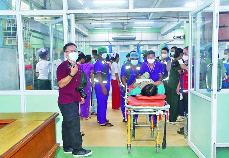 ရန်ကုန်ပြည်သူ့ဆေးရုံကြီး၏ သဘာဝဘေးအန္တရာယ်နှင့် လူအများထိခိုက်ဒဏ်ရာရရှိမှုများအတွက် ကုသမှုဆောင်ရွက်ပေးနိုင်ရေး Mass Causality Management Plan (၂၀၂၅) အတိုင်း ဆေးရုံရှိအဆောက်အအုံများ ပျက်စီးမှုများရှိနိုင်ခြင်းအပါအဝင် case scenario များဖြင့် သရုပ်ပြလေ့ကျင့်ခြင်းကို မေ ၂၃ ရက်က ရန်ကုန်ပြည်သူ့ဆေးရုံကြီး အရေးပေါ်ဌာန၌ ပြုလုပ်ခဲ့သည်။